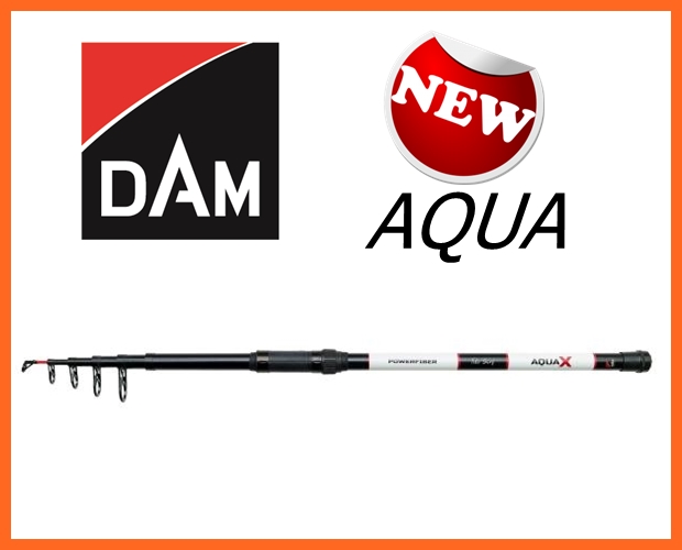 A DAM, AQUA-X TELE SURF új sorozata, a kedvező árú távdobó teleszkópos botok szegmensét bővíti, kiváló minőségű alapanyagok felhasználásával készített botokkal. Ezzel is megmutatva, hogy lehet olyan kedvező árú botcsaládokat létrehozni, melyek minőségi és használhatósági szempontból is kiválóak. Az AQUA-X sorozat TELE SURF(távdobó) változata 3,6m, 3,9m vagy 4,2m hosszúságban, 100gr-250gr dobósúlyban vásárolható meg. Az üvegszállal erősített bottest hatalmas terheléseket képes elviselni, melyben nagy segítséget nyújtanak a kiváló minőségű SIC gyűrűk és azok tökéletes elosztása a bot testen, így a nagy méretes pontyok vagy más halak fárasztásánál hirtelen fellépő ostorcsapás szerű terhelés váltásokat is könnyedén képes elviselni. A gyűrűk erős, vastag keretben foglalnak helyet. Az orsótartó ABS-grafit alapanyagból készült és ütésálló. A bot nyéltagja csúszásmentes borítással van ellátva, hogy ne csússzon és kényelmes fárasztást tegyen lehetővé. A botok festése modern, de mégsem hivalkodó, a spicc rész piros színű festékkel van bevonva, a festést UV ellen is védelmet nyújtó lakkal van fedve.