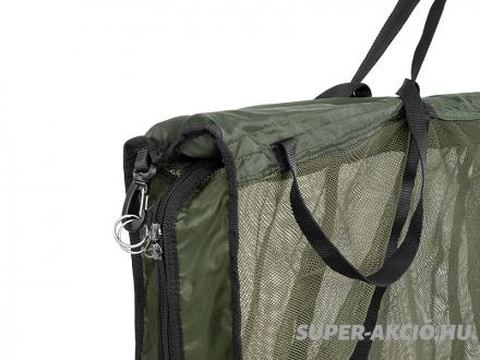 A háló két fekete textil hevederrel van megerősítve, amelyek a középső fogantyúba futnak. A hosszú fogantyúknak köszönhetően a zsák könnyen felakasztható a mérlegre. A zsák emellett mindkét oldalán textil fogantyúkkal van ellátva, amelyek egyszerű emelést és szállítást biztosítanak. Az erős cipzárak mindkét oldalon és a felső részen találhatók, ami azt jelenti, hogy a CWS szinte teljesen kicipzározható a hal könnyebb kezelése érdekében.