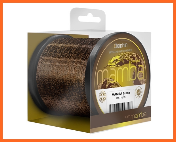 Delphin Mamba Carp 3D Monofil Horgász Zsinór Bronz 300m 0,32mm 7,4Kg. Kiváló pontyozó damil egyedi 3D mintázattal. A MAMBA kiváló tulajdonságokkal rendelkezik, mint a jó csomó tűrő képesség és szilárdság. Az egyedi álcázó kivitelének köszönhetően gyorsan beleolvad a környezetbe. A szilárdságának és kopásállóságának köszönhetően a legnehezebb környezetbe is megállja a helyét, valamint a nagyon sima és finom felületnek köszönhetően távdobásra alkalmas. Ezeknek a tulajdonságoknak köszönhetően a Delphin MAMBA univerzális pontyozó damilnak számít, amely megfelel a legigényesebb követelményeknek, és minden helyzetben megállja a helyét.