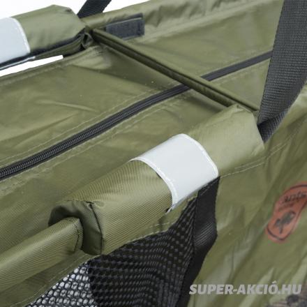 A mérlegló zsáknak négy úszó lebegtetője van, amelyek fényvisszaverő csíkokkal rendelkeznek az éjszakai láthatóság érdekében. A felső középső részen egy dupla heveder található, amely acél gyűrűkkel van ellátva és a mérleg csatlakoztatására szolgál. A dupla cipzárak teljes hosszúságúak. Nagy hangsúlyt fektettek a háló lyukaira, hogy elegendő oxigéndús víz jusson a tárolt halak számára. A mérlegelő két oldalán műanyag "D" gyűrűk találhatók, amire egy 3m-es kötelet lehet rögzíteni, ami egy műanyag csappal ellátott úszóval végződik, ami a mérlegelő parton történő rögzítésére szolgál. Mindez egy tépőzáras zsebben van elrejtve. Vízálló huzattal rendelkezik, ami belül gumírozott, így megakadályozza a víz és a szag kiszivárgását a mérlegelőből.