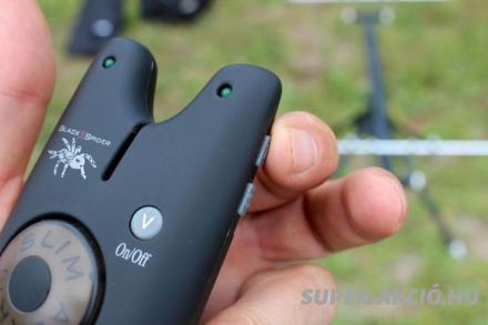 A kapásjelző egyesével vásárolható meg. Már kézbe véve azonnal jó benyomást tesz, mert nagyon finom, ún. "soft touch" bevonatot kapott, amitől fogása selymes, kellemes tapintású. Elől a Black Spider logó és a bekapcsoló gomb azonnal szembe tűnik, ahogy a két oldalon felül a jelző ledek is. Az előlapon vonzza a szemet a kozponti nagy tárcsa Slim Alarm felirattal, (mely kapás esetén látványosan fénybe borul). Első használatkor, ha az elemek behelyezése után nem kapcsolódik be automatikusan a készülék, a 'V' jelzésű bekapcsoló gombot kell néhány másodpercig nyomva tartani. Fontos, hogy ugyanez a gomb egyben a hangerőt is állítja, így további rövid nyomásokra a hangerőt tudjuk léptetni. Hosszú megnyomásra kapcsolja ki a készüléket. A kapásjelző alján a szokásos masszív, szabvány menet található, és egy kis jack bemenet a szvingernek.