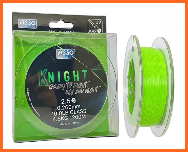 Magas minőségű Japán távdobó zsinór éjszakai és nappali horgászatra, köszönhetően a jól látható UV-zöld színnek és az UV fényben világítani tudó tulajdonságának. Fluorocarbon bevonata és kiváló szakító szilárdsága tökéletessé teszik a távdobás rajongói számára. A japán alapanyag minősége kiváló, emellett a zsinór hihetetlen érzékenységről tesz tanúbizonyságot kapásjelzésnél és fárasztáskor. A KNIGHT fluorocarbon bevonatú monofil nylon, egy olyan zsinór melynek központi magja tiszta nylonból készült és amelyet fluorocarbon réteg borít. Ennek a tulajdonságnak köszönhetően nagyobb érzékenységet és lágyságot (ami alapvetően a minőségi nylonszál jellemzői) tesz lehetővé, párosulva a vízben való láthatatlansággal és a fluorocarbonra jellemző rendkívül magas kopásállósággal. Elérhető 150m - 300m és 1200m-es kiszerelésekben.