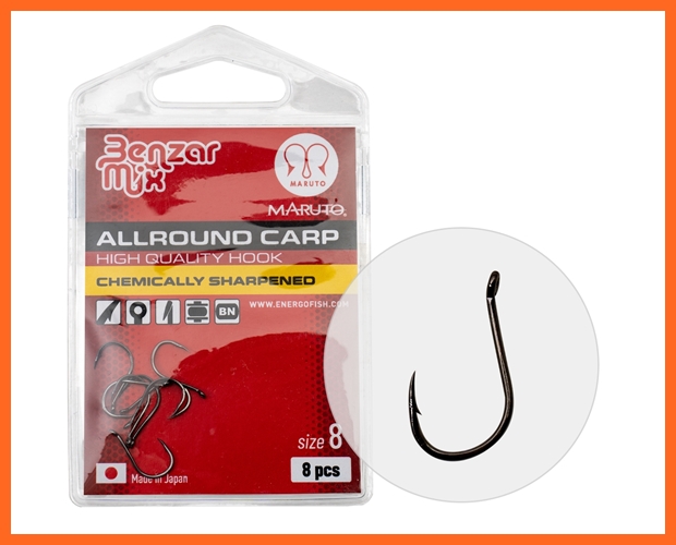 Az Allround Carp egy hosszú szárú, füles, szakállas horog, amely kifejezetten a ponty és az amur horgászatához készült. Ezt a horgot használva, füles kialakítása miatt, könnyedén felkínálhatjuk hajszálelőkén vagy csalitüskén kedvenc pellet csalijainkat.