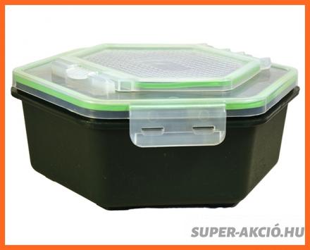 Masszív műanyag csalitároló doboz precízen záródó műanyag fedővel. Apró furatokkal ellátott fedele engedi levegőzni a csalinkat. Kis méretű furatain még a legkisebb pinkik sem tudnak megszökni. A dobozok fedele praktikus felső és oldalsó patentzárakkal van ellátva, mely miatt a praktikussága, akár csalizás során is kiemelkedő.