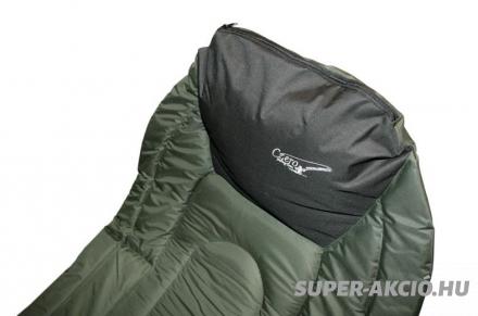 Az ágyfelület 85cm-es szélessége és 210 cm-es hossza az igazán nagyra nőtt horgászok számára is teljes kényelmet biztosít. A horgász ágy a komfortérzetet hivatott növelni a fejrész neoprén bevonata, és a ki cipzározható, extra puhaságú párna is. A kiemelkedően stabil acél csőváz nagyfokú terhelhetőséget szavatol. A teherbírást növelik a vastag gumi rögzítők, és a megerősített varrások is. A horgász ágy 600D poliészter anyagát PVC bevonattal látták el, így kopásállósága mellett vízlepergető tulajdonságokkal is rendelkezik. Lábai teleszkópszerűen állíthatók; így az ágy talajtól mért magassága 28-tól 43 cm-ig növelhető. A fokozatmentesen állítható lábak segítségével, és a lapos nagy felületű sártalpaknak hála az a horgász ágy bármely terepen teljes biztonsággal felállítható.