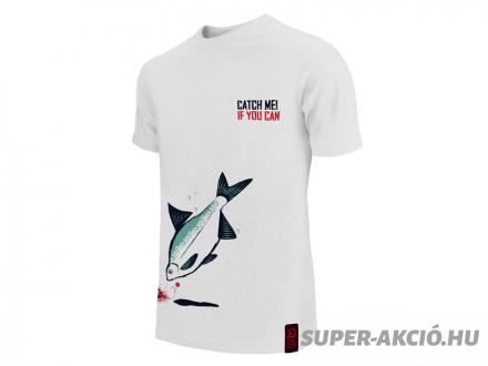 A stílusos és kényelmes pólók sorozat hal motívummal, mely nem csak horgászatra de a mindennapokra is alkalmas. CATCH ME IF YOU CAN (fogj meg ha tudsz) minden horgász öltözékében helye van, mellyel a vízparton ki fog tűnni. A Catch me! Keszeg póló fehér színű, melyen keszeg látható, mely éppen a csalihoz közelít, ami minden horgász vágya.Maga a póló kiváló minőségű, akárcsak az alkalmazott színes nyomat. Széles méretválasztékban kínáljuk az S-től a KING MÉRETŰIG (megfelel a 4 + XL-nek, amit a legtöbb országban XXXXXL-nek neveznek). A King méretű modell játékosan felöltözteti még a legtermetesebb, 135 kg + súlyú horgászokat is.