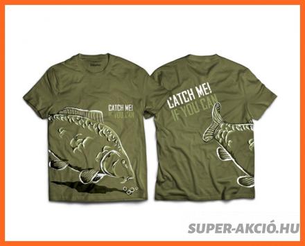 Stílusos póló sorozat, mely megkülönböztet. A CATCH ME IF YOU CAN (fogj meg ha tudsz) felirat ponty képpel, egy nem mindennapi darab az Ön ruhatárába, nem csak horgászatra. A ponty az egész törzs körül a póló alsó részén. A ponty mint skicc vagy festmény minden fontos részlet megjelenítésével. A hal olyan helyzetben van megjelenítve amikor a bojlihoz közelít, amire mindenki vár a vízparton. A póló jó minőségű, ugyanúgy a használt színes nyomtatás. A CATCH ME IF YOU CAN pólóban mindenki tudja kivel van dolga! Nagyon széles választékban kapható az S-es mérettől a 3XL-es méretig. Ha minőségi horgász ruha, akkor Delphin.