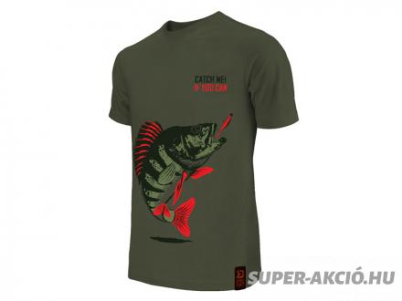 Delphin Catch Me Sügér Mintás Horgász Póló XXXXL-es King Size