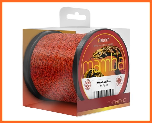 Delphin Mamba Carp Fire Monofil Horgász Zsinór Narancssárga 600m 0,26mm 5,2Kg. Kiváló pontyozó damil egyedi 3D mintázattal. A MAMBA kiváló tulajdonságokkal rendelkezik, mint a jó csomó tűrő képesség és szilárdság. Az egyedi álcázó kivitelének köszönhetően gyorsan beleolvad a környezetbe. A szilárdságának és kopásállóságának köszönhetően a legnehezebb környezetbe is megállja a helyét, valamint a nagyon sima és finom felületnek köszönhetően távdobásra alkalmas. Ezeknek a tulajdonságoknak köszönhetően a Delphin MAMBA univerzális pontyozó damilnak számít, amely megfelel a legigényesebb követelményeknek, és minden helyzetben megállja a helyét.