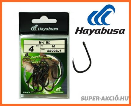 A HAYABUSA népszerű K-1 sorozata, melyet elsősorban pontyhorgászatra fejlesztettek ki. Kiválóan alkalmazható a hagyományos pontyozó módszerek mindegyikénél, de a bojlis horgászatok során is. A horog matt titán színe nem csillan meg, nem rontja a csalink álcáját, ami fontos az óvatos, gyanakvó pontyok esetében. A K-1 egy nagy öblű, kerek formájú, erős pontyozó horog, amely ideális a nagyméretű csalikhoz, a pelletes és bojlis technikához, a horog szára közepesen hosszú ezért tűzött kemény illetve puha csalikat és fűzött (a horog öbölbe kötve) csalikat egyaránt használhatunk. Ez a horog szakállnélküli verziója a K-1 sorozatnak, így kisebb roncsolással és könyebben hatol be a hal szájába.