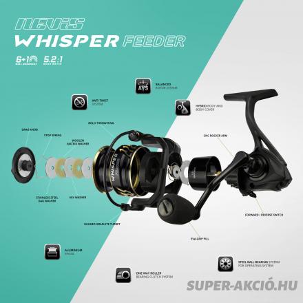 Precíz futású, modern feeder orsó család. Két méretben készül , a kisebb 4000-es méret tökéletesen megfelel picker botokhoz és rövidebb feeder botokhoz a rendkívül alacsony súlya miatt. Az 5000-es méret pedig már megfelelően erős nehezebb és hosszabb feederbotokra. 6 db acél golyóscsapágy + 1db tűgörgő csapágy garantálja a rázkódásmentes futást. A fémből esztergált elegáns fekete hajtókar neoprén fogantyú részt kapott ami kellemes és biztos fogást nyújt a téli horgászatok alkalmával is. A könnyitett AIR DESIGN rotor rész úgy lett kialakitva hogy kényelmesen lehessen kezelni a felkapókart. Finom kidolgozás jellemzi, ami nem csak a külső megjelenésben vehető észre, hanem a technikai paraméterekben is. A főtengely gumi védőkupakot kapott ami megakadályozza a kosz és a víz bejutását. A fékrendszer széles határok között állítható és finoman adagolható, így megfelel vékony zsinórós horgászatra is. Az 5.2:1-es áttétel garantálja, hogy a nagyobb testű halakat is erőlködés nélkül tudjuk kitekerni.